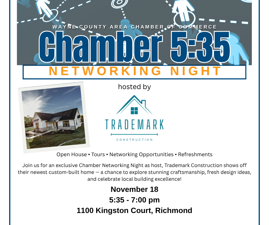 Around the Chamber November 14, 2025November 14, 2025Information supplied by Wayne County Area Chamber of Commerce Many things happening in Wayne County Click on the graphics in this email to view more information about the events. Join us on the next Chamber trip in June 2026 and visit Greece, Turkey, Malta and Spain! Click HERE for more trip info! Wayne County Area Chamber of Commerce | 33 South 7th Street, Suite 2 | Richmond, IN 47374 US